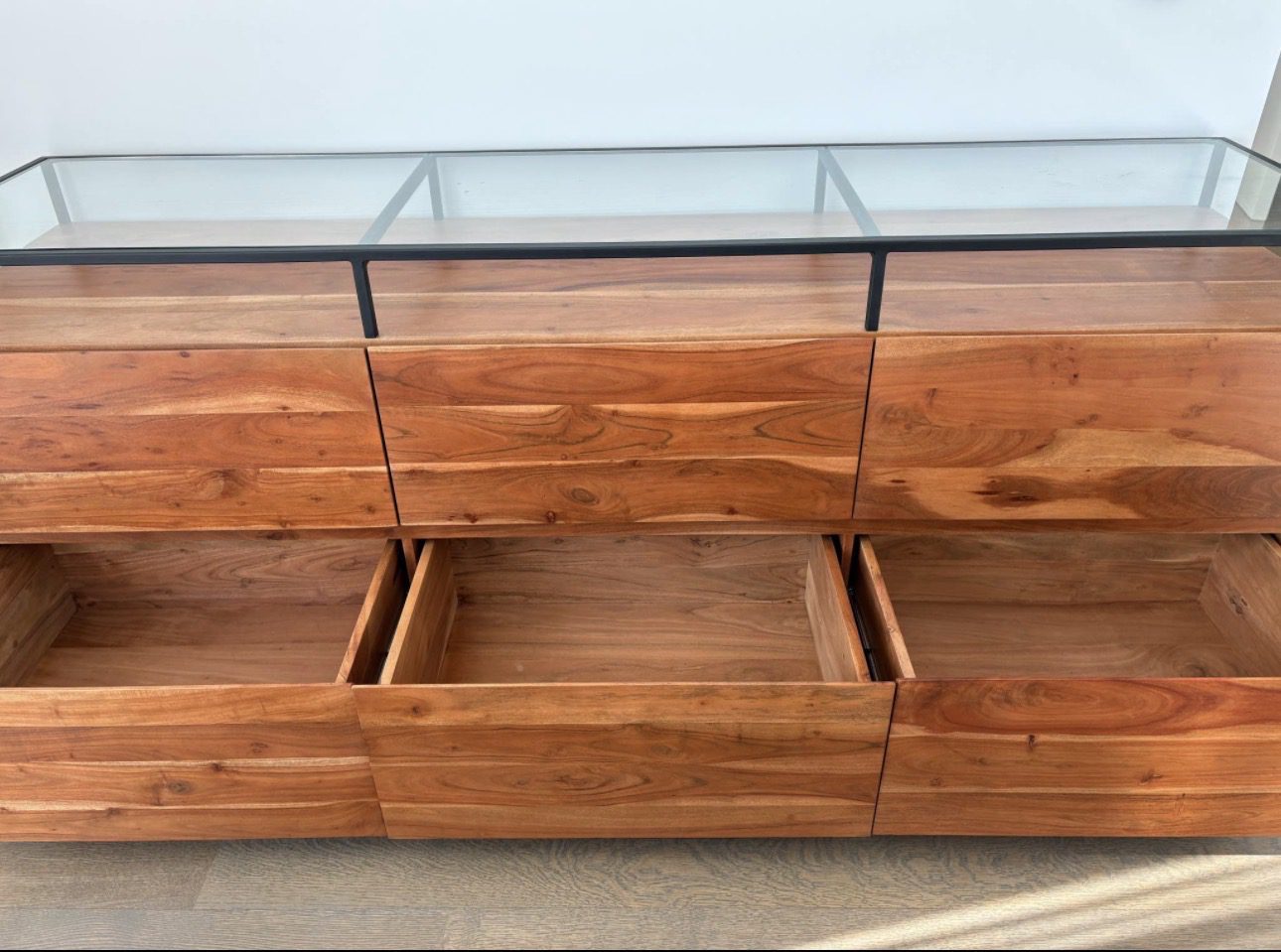 CB2 / LAWSON LOW 6-DRAWER Modern Glass-Top Wood Dresser