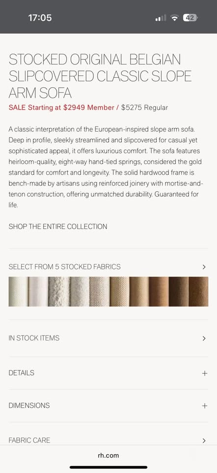 Restoration Hardware Belgium Slope Arm Sofa