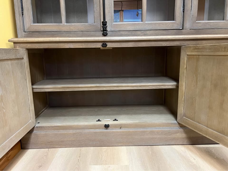 91″H sideboard and hutch features 1 fixed shelf and 2 removable shelves in hutch; 1 removable shelf per sideboard cabinet