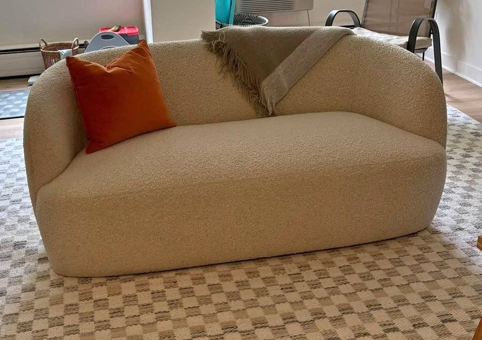 CB2 GWYNETH BLACK BOUCLE SWIVEL CHAIR BY GOOP