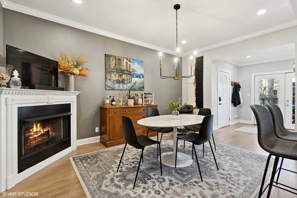 Room and Board 2 Quartz Top table sets with 8 high chairs