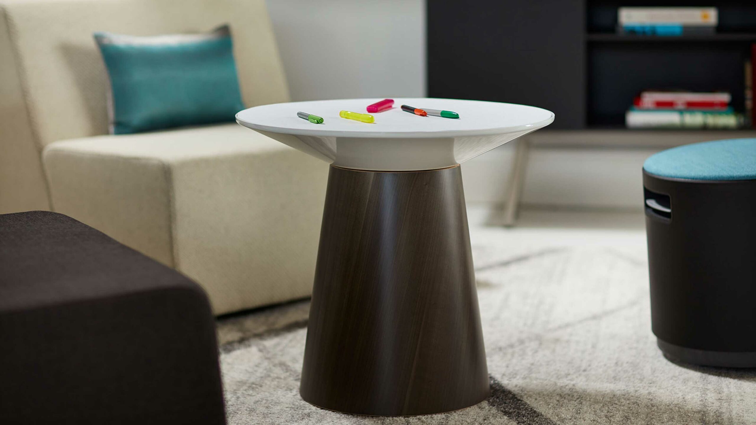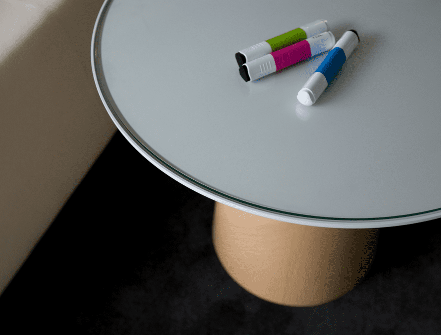 Paper Table’s rotating top catalyzes brainstorming. Use a refillable stack of inspiration-ready paper or the marker-friendly erasable top.