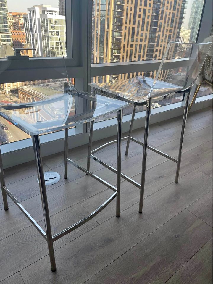 Be the first to review “CB2 Chiaro Clear Nickel Stools (Set of 2)”