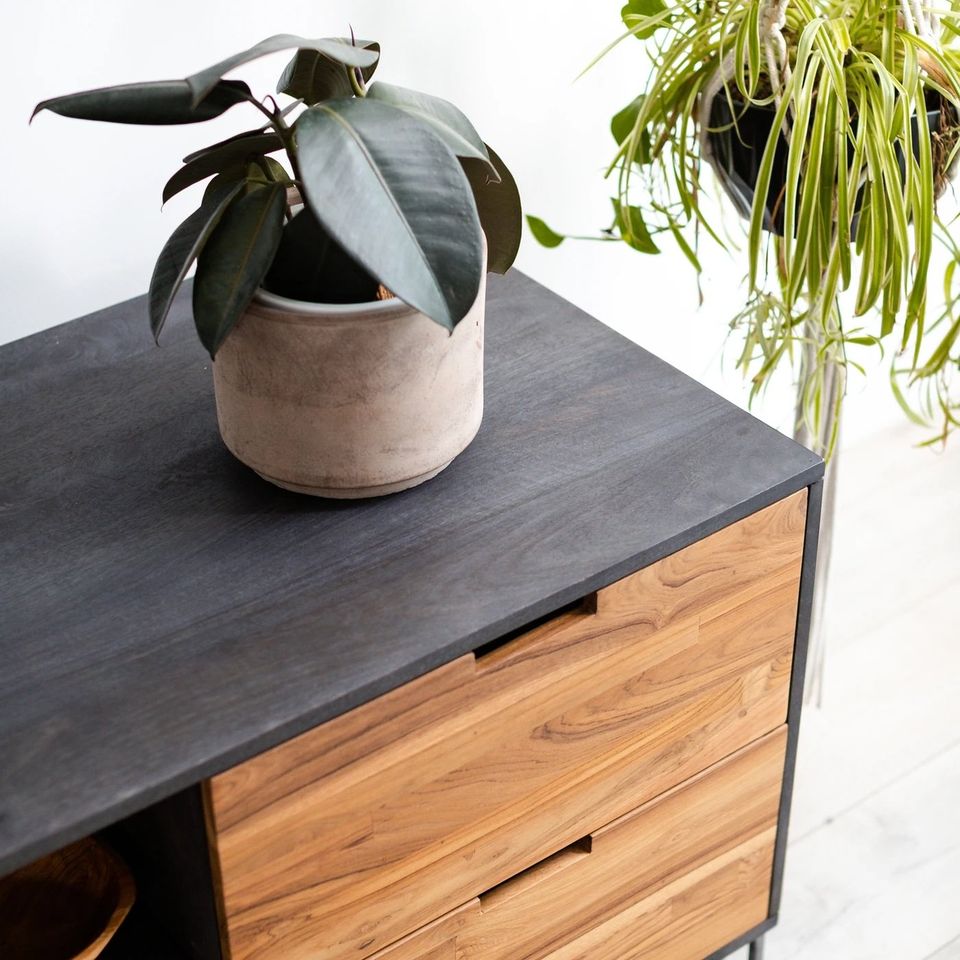 • Mango and repurposed teak wood with wax finish