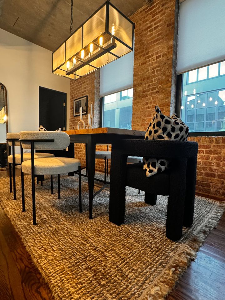 Beautiful dining set for sale. Pricing includes the table, chairs and rug and you would be getting a steep discount (close to 60% off). These items are barely used and in excellent condition!