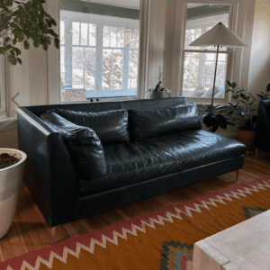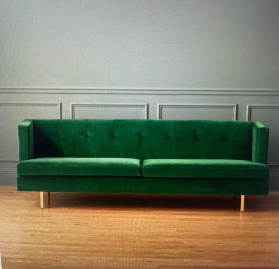 Be the first to review “Cb2 Emerald Sofa with Brass legs”