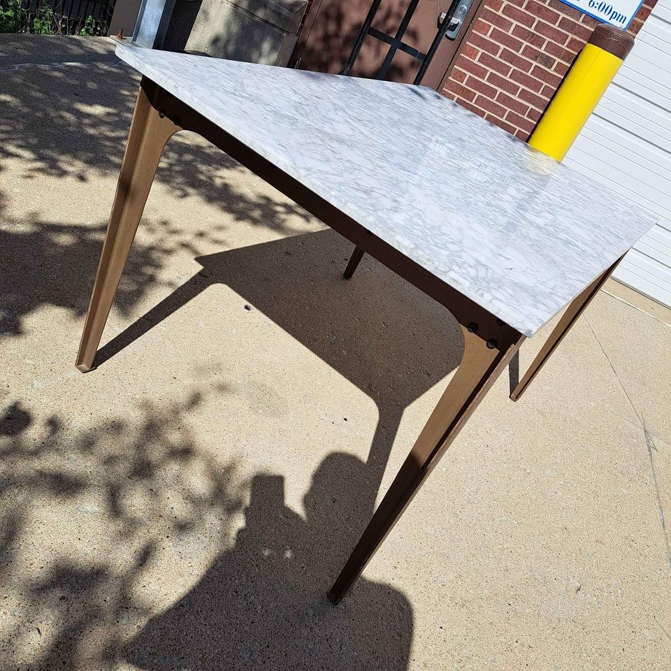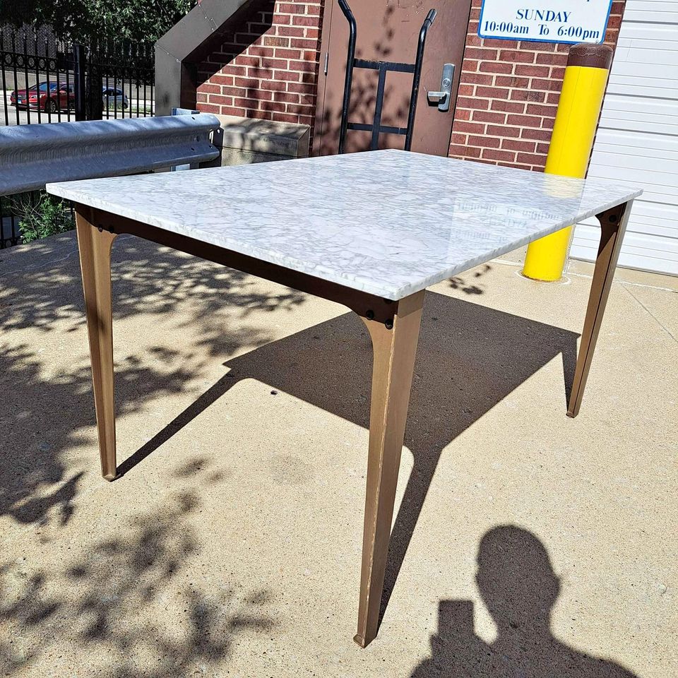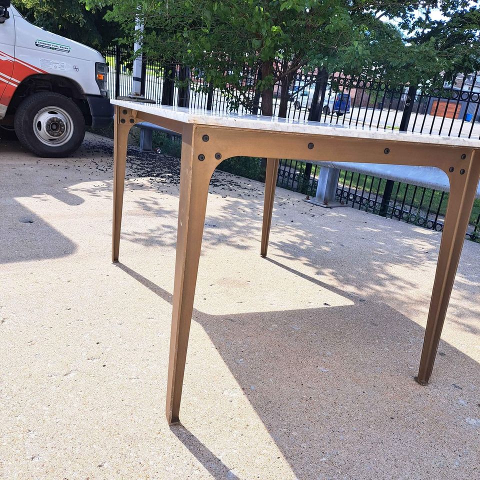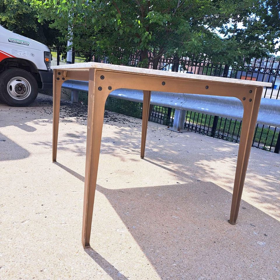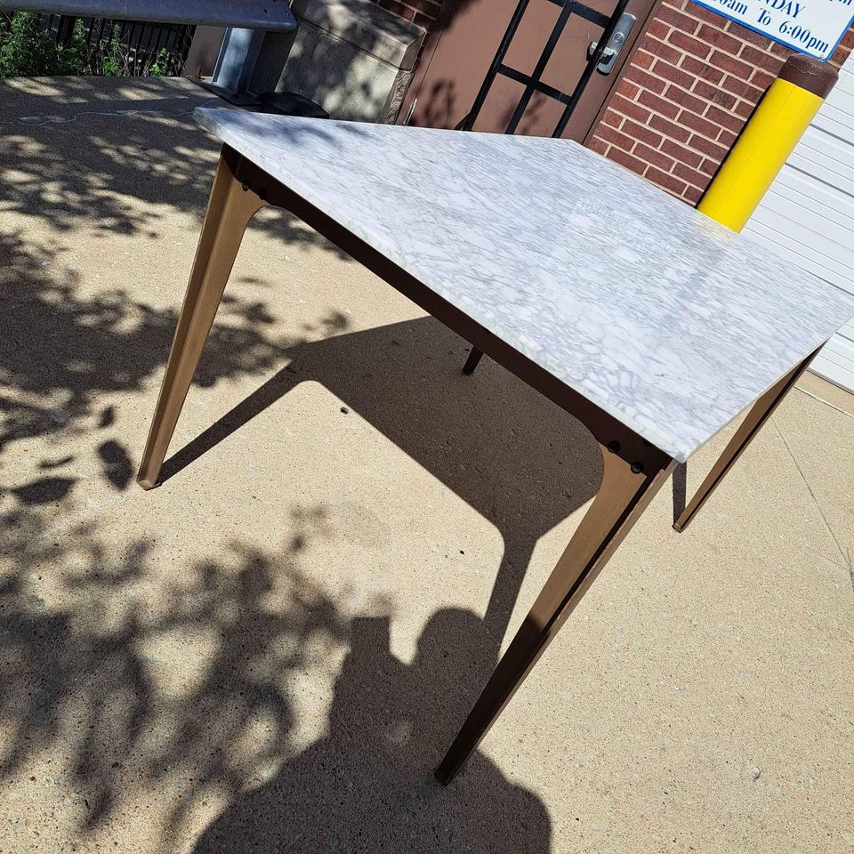 In the pictures you can see some stains on the marble that have already been cleaned. Dimensions: Width: 54 inches, Height: 30 inches, Depth: 35 inches