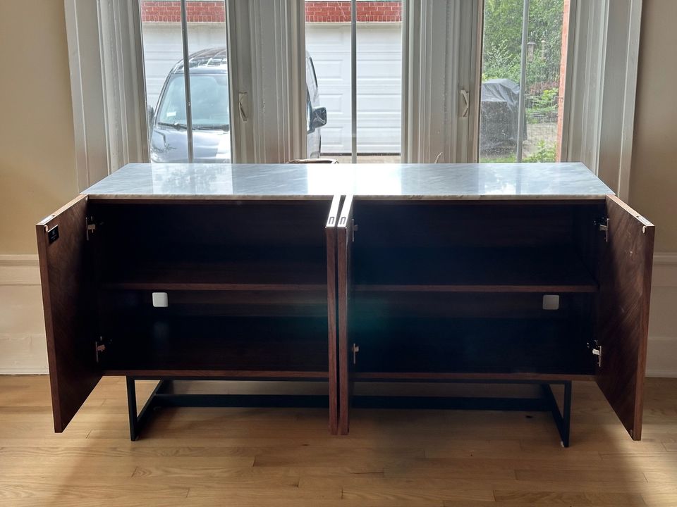 Barely used, brand new CB2 walnut & marble console. Really sturdy and pretty! Bought it for 1,300 new less than 6 months ago, just doesn’t fit our space. Local delivery available.