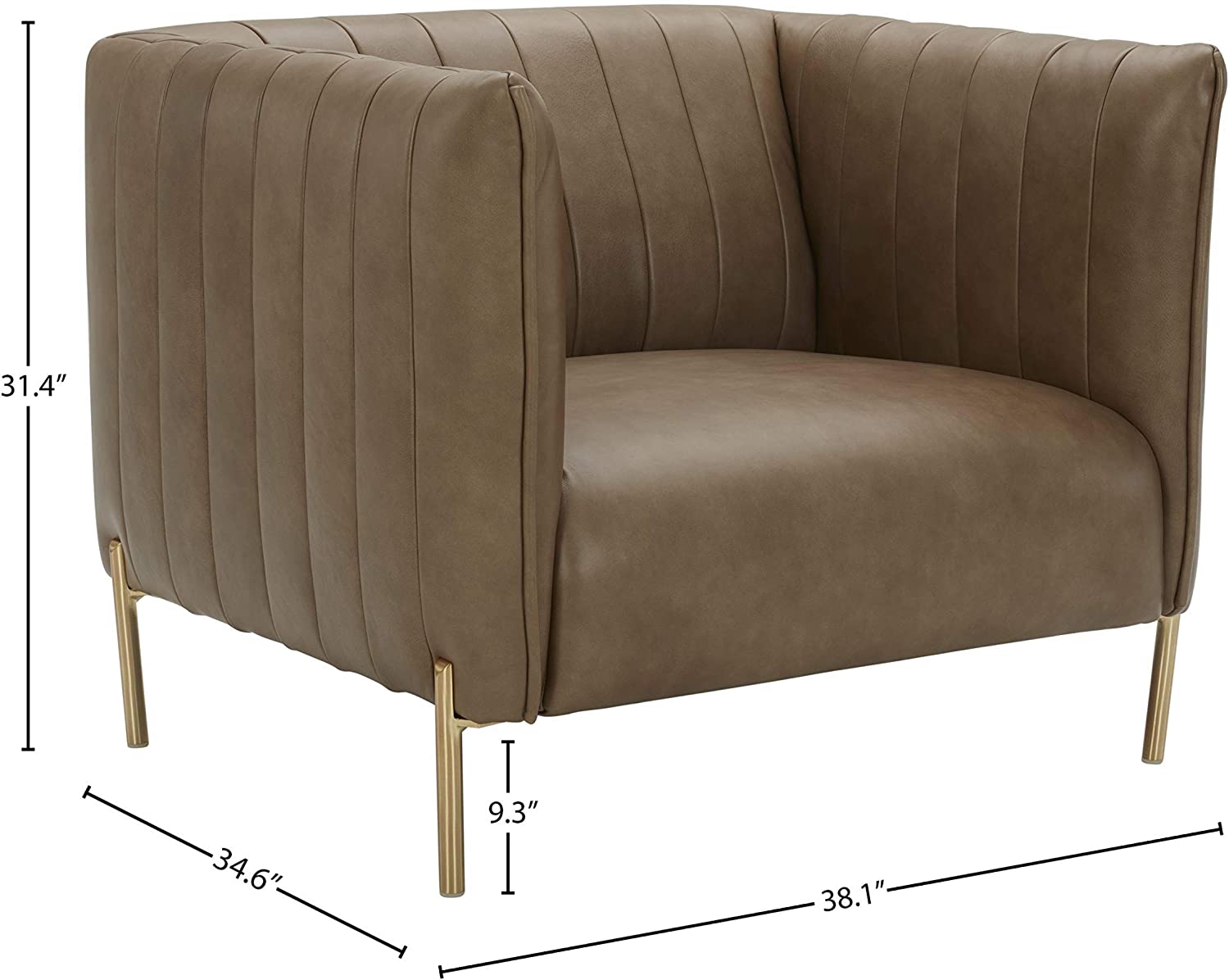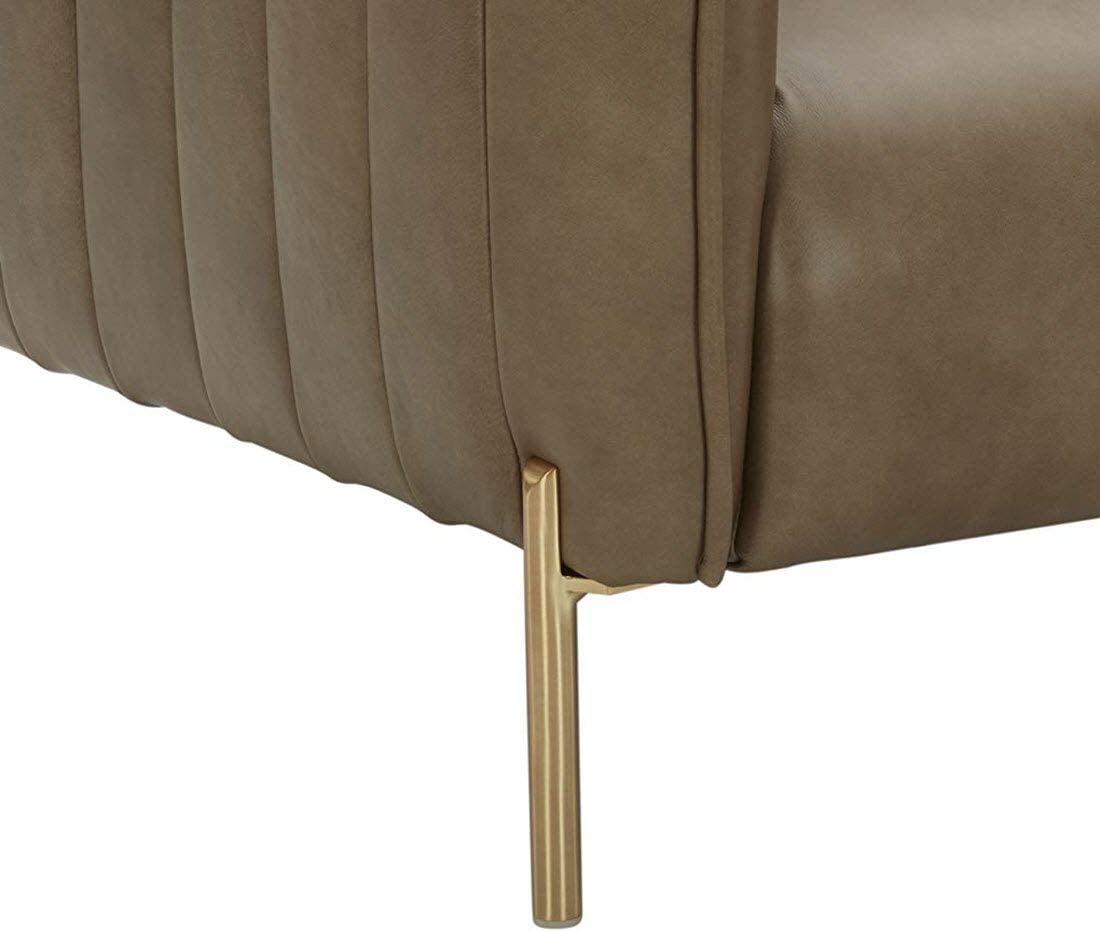 The squared shape and channel-tufted upholstery are unmistakably mid-century, while soft leather and shiny metal legs bring contemporary elegance. This piece is a stunning style statement for glam, modern and mid-century rooms.