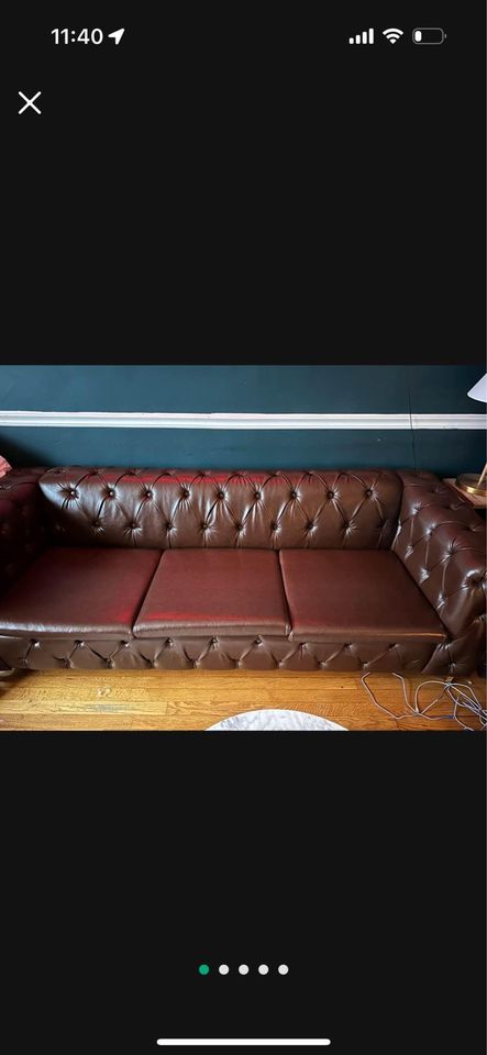 April 30, 2024 WAYFAIR 3 Years Old Chicago, IL 83"W Brown Faux Leather Pre-owned - Like New ,