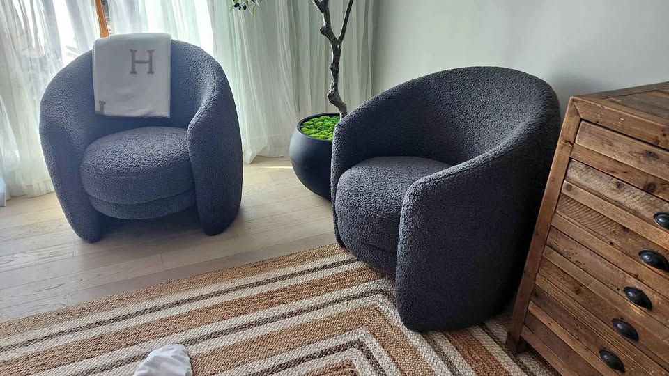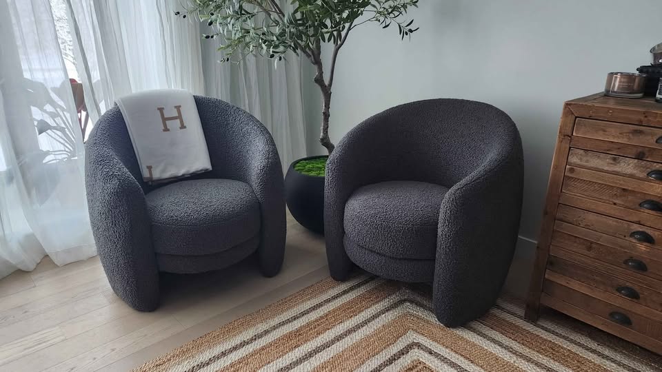 Sink into the sculptural curves of the Fernie Bouclé Chairs from Crate & Barrel — a modern duo designed for both lounging and conversation. Upholstered in soft, textured bouclé fabric, these chairs blend mid-century inspiration with contemporary charm. The rounded silhouette adds an elevated touch to any space, whether you’re creating a reading nook, leveling up your living room, or styling a statement corner.