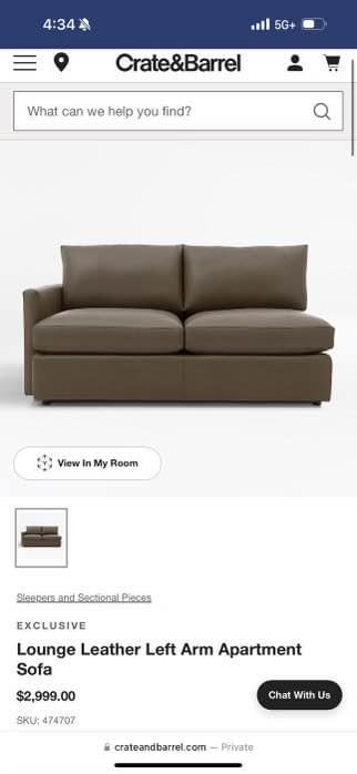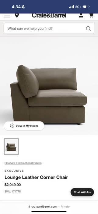 New Crate&Barrel Lounge Leather 2-Piece Sectional Sofa.
