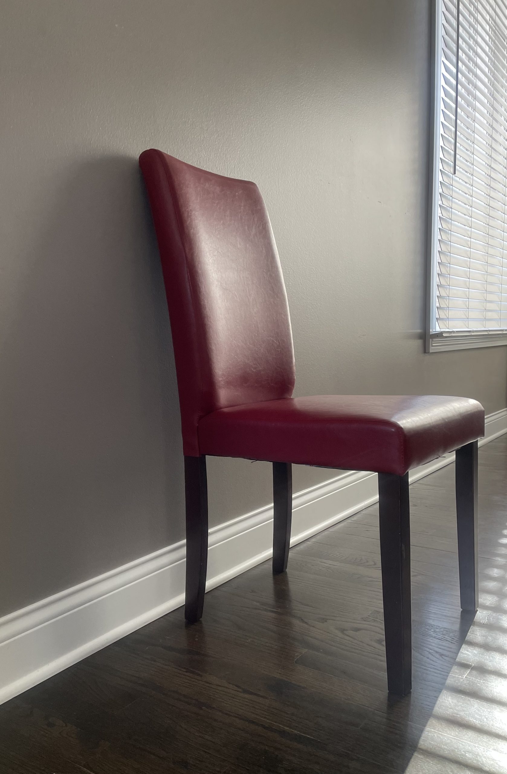 Brighten up your dining room with this nice red dining chair.