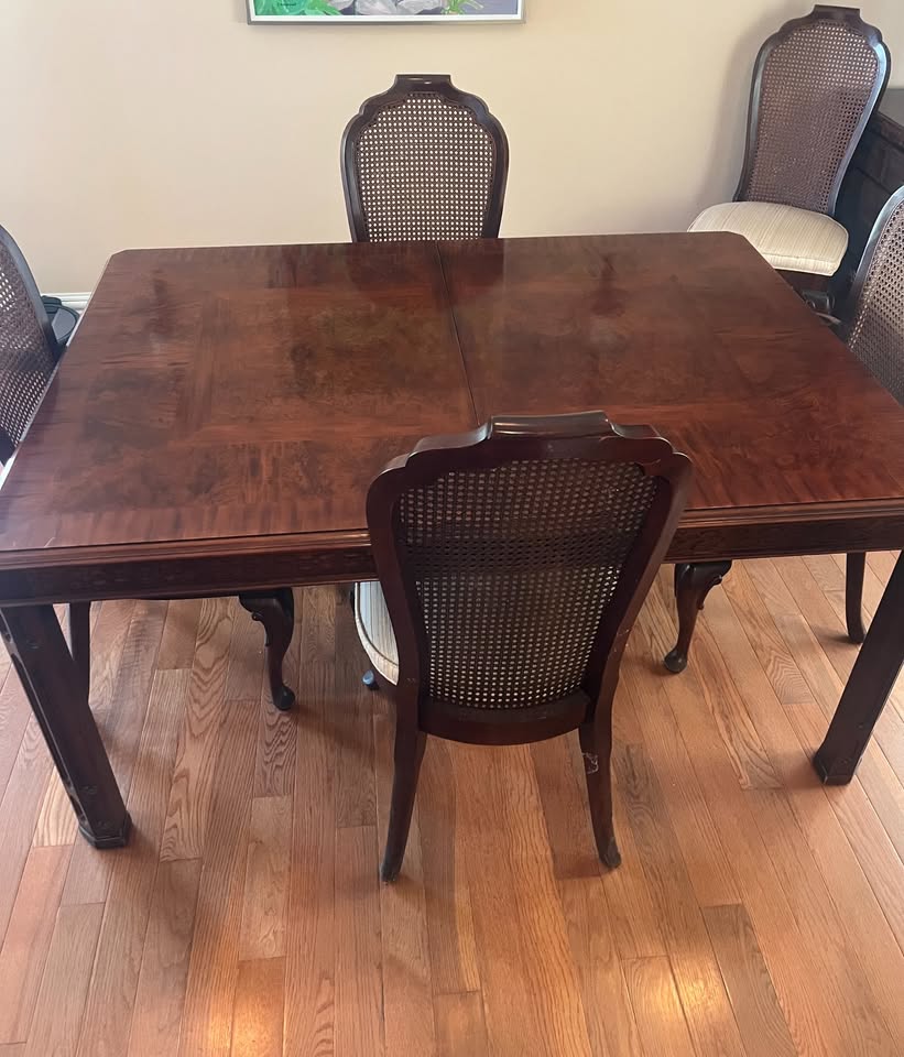 From Century Furniture Company. Made of four woods to create a gorgeous burl top look – solid maples and mahogany, with prima vera and white ash burl veneer.