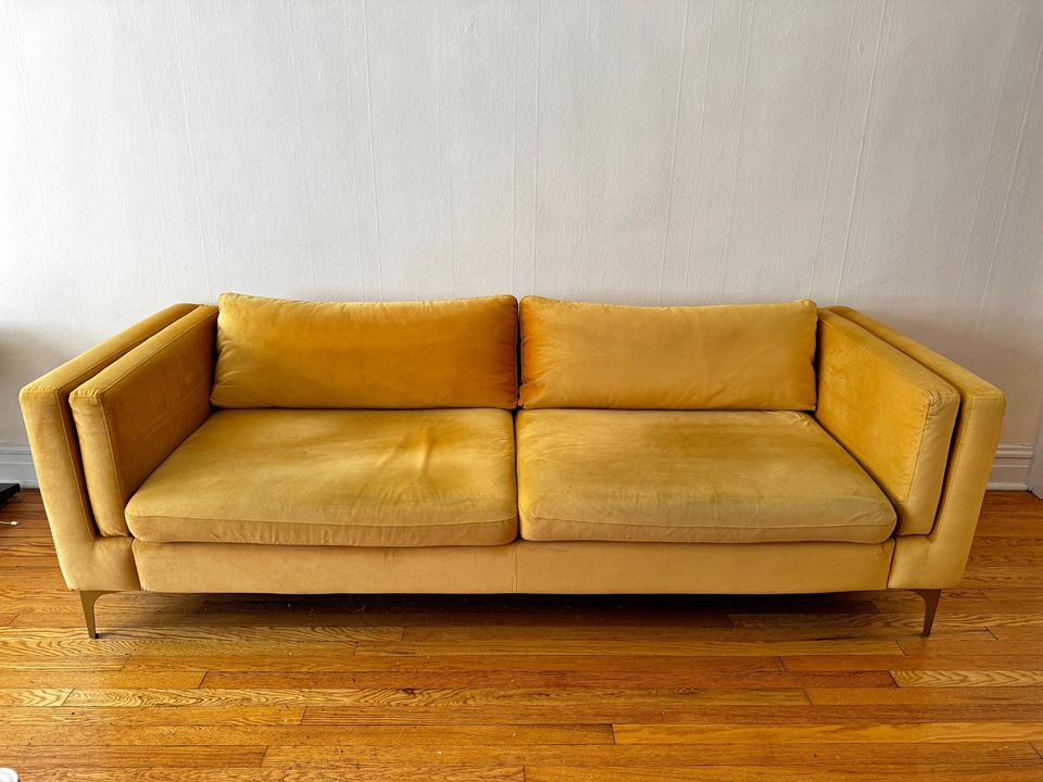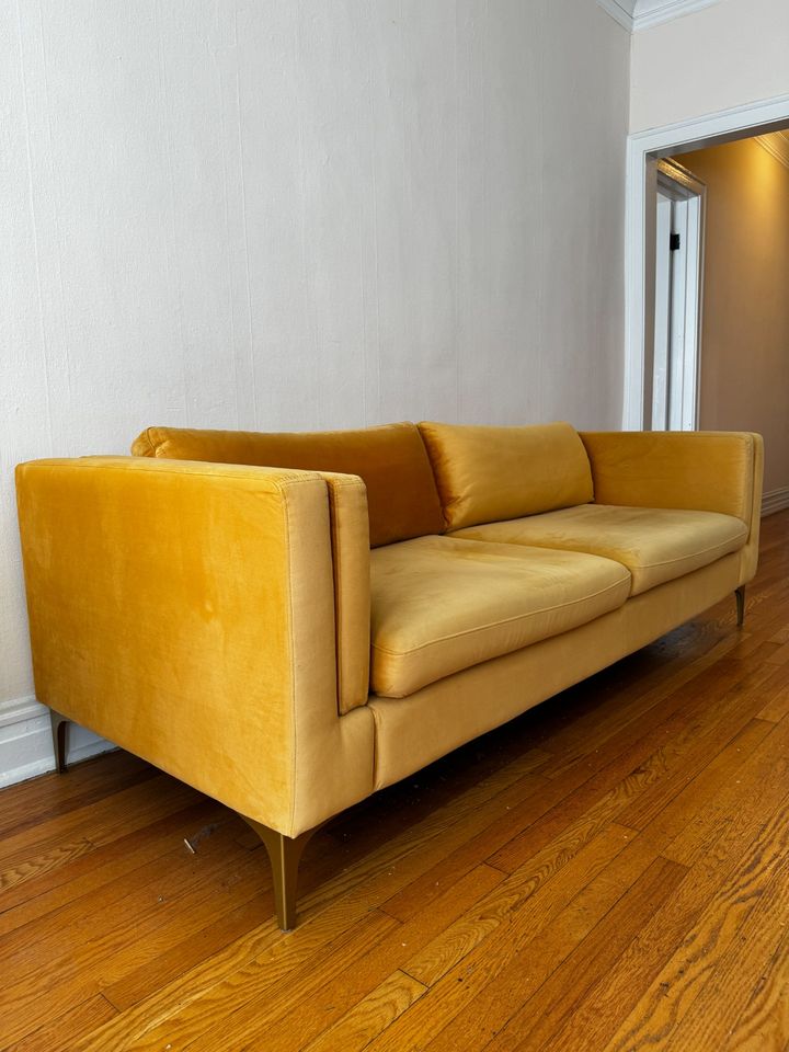 July 21, 2024 Other 6 Years Old Chicago, IL 90"W x 34"D x 28"H Yellow Velvet Pre-owned - Very Good ,
