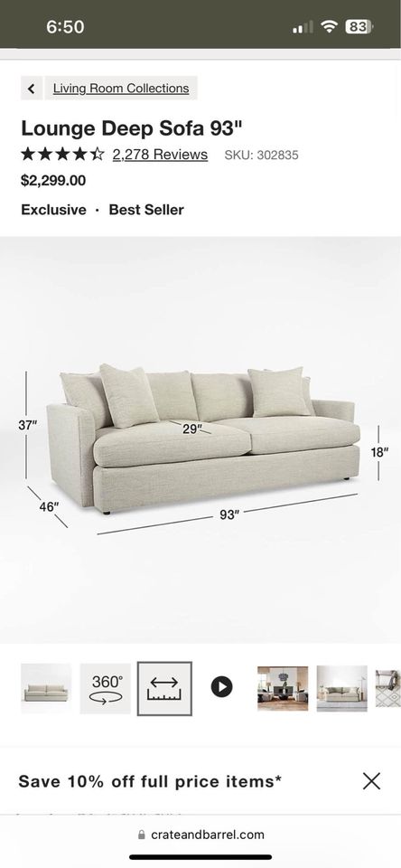 OBO Crate and Barrel Deep Lounge Sofa