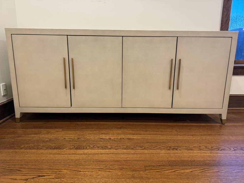 This is a beautiful piece of furniture from restoration hardware. 18” deep, 80” wide and 34” tall. Currently $4,300 brand New