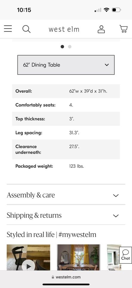 October 29, 2024 WEST ELM 3 Years Old Franklin, WI 62"W x 39"D x 31"H Other Other Pre-owned - Very Good ,