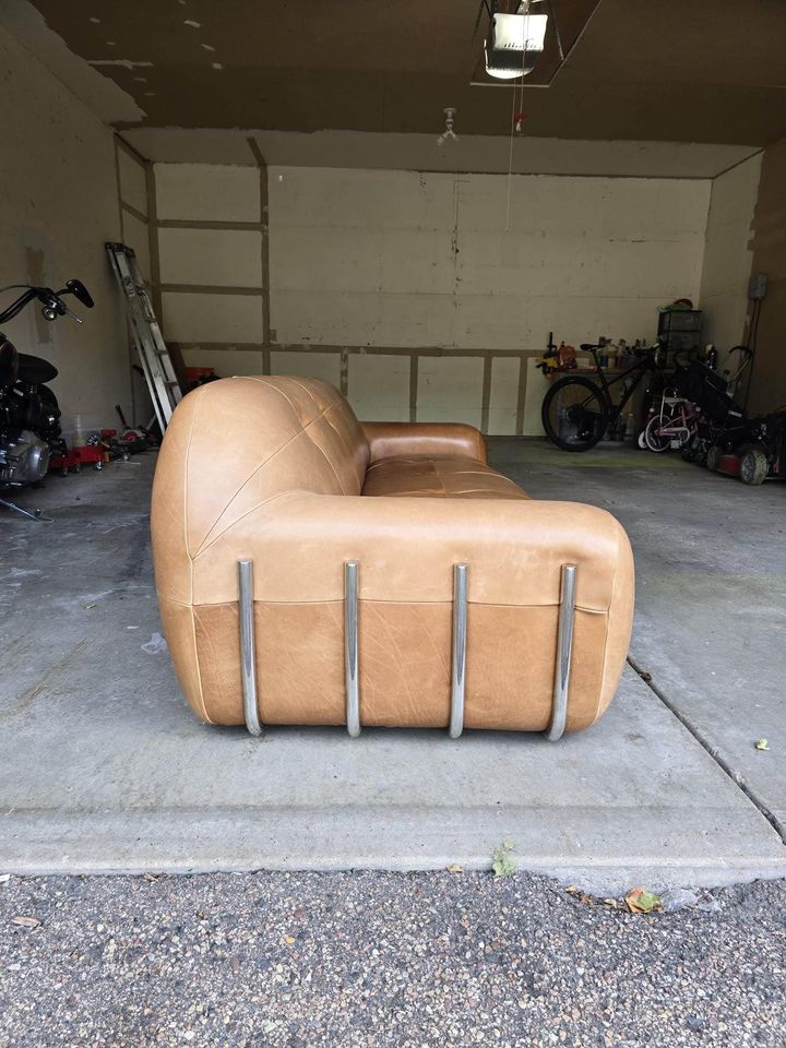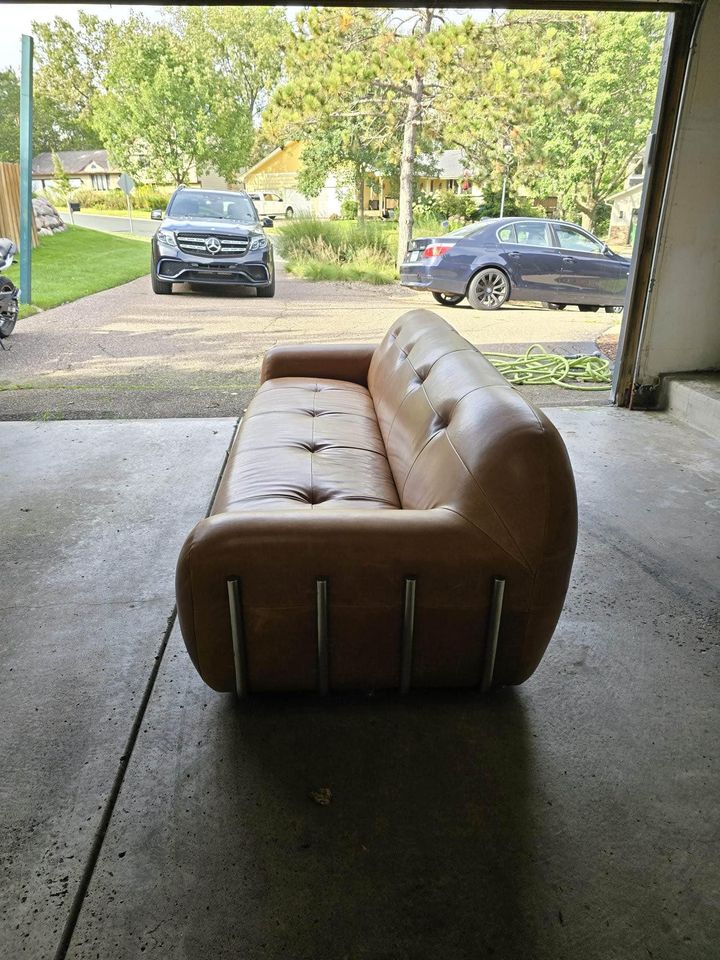 Brace 98.25″ Saddle Leather Tufted Sofa 98.25″Wx39.25″Dx28.75″H