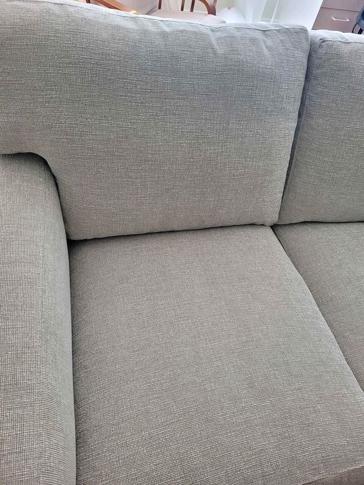 Pre-owned Steelcase 24″ Enea Occasional Table. Finishes are – Grey surface with a White edge and a Silver base. 17 1/4″ Table Height
