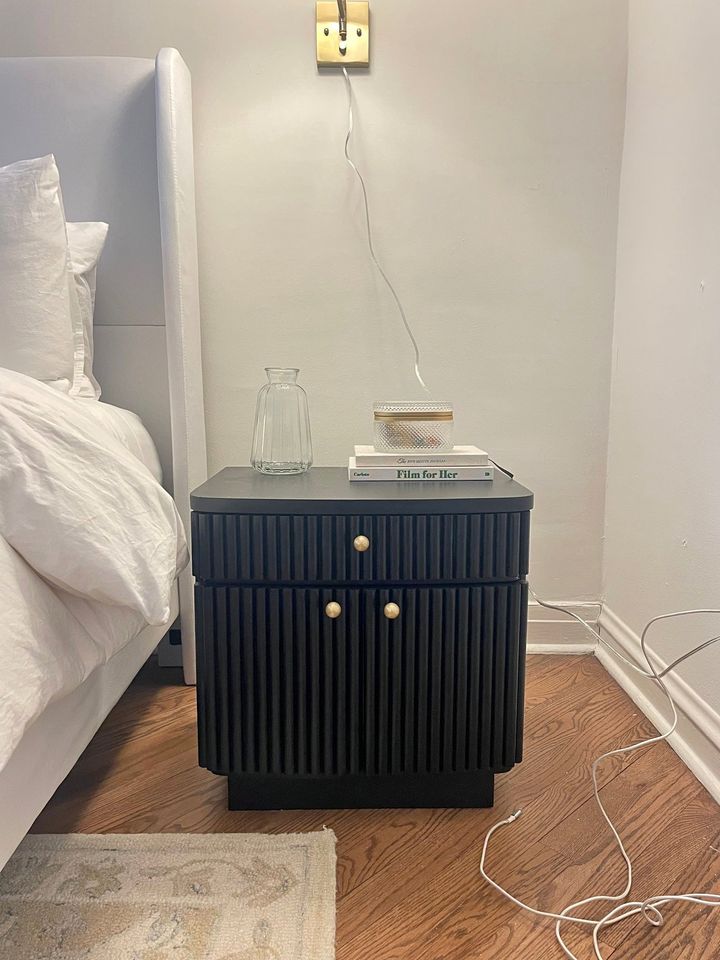 I had these nightstands made to look like the cb2 cameo curved nightstands that retail for $500e. solid wood and perfect condition (only had for a few months) just going in a different direction!