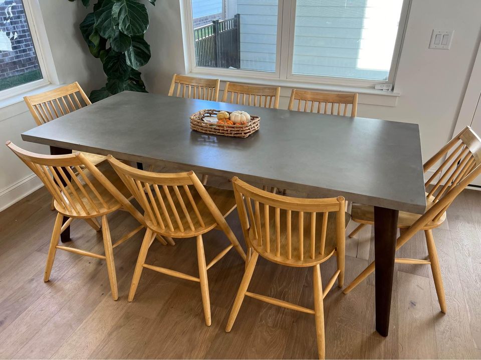 CompareWest Elm concrete top with iron modern legs (base and legs separate for moving). Originally $1,800