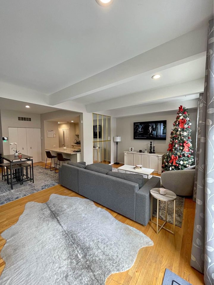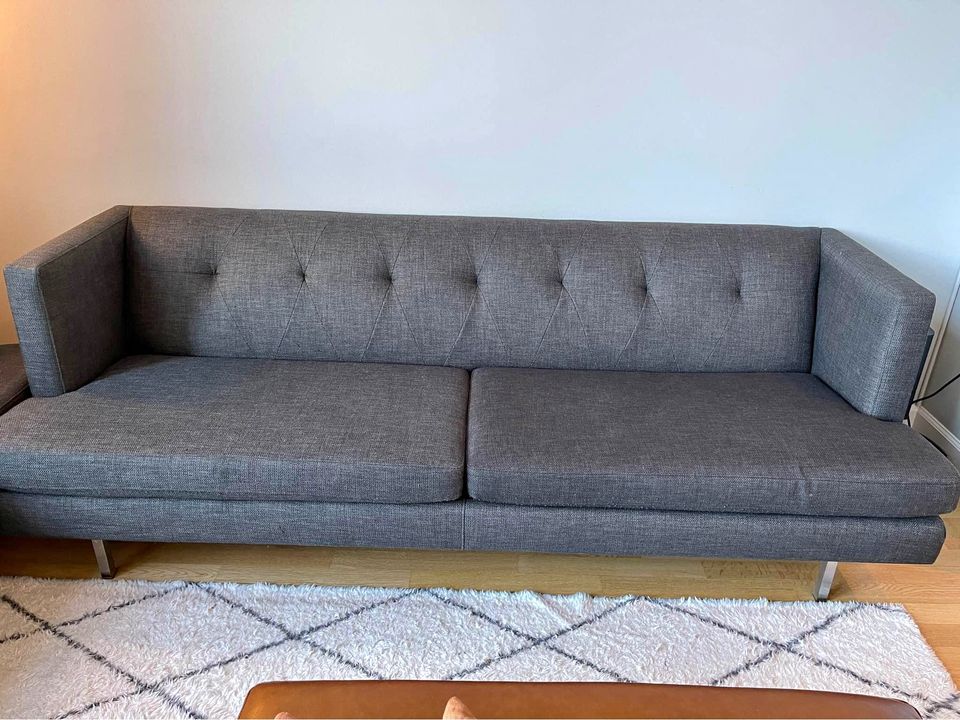 Beautiful gray tweed couch in good condition. It is 3 years old. Has only been used for 2 and in storage for the past year because our current tenants didn’t need it. After all customizations we paid $3500.